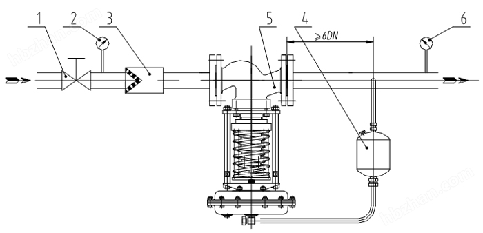 2、介質(zhì)為蒸汽時,調(diào)壓閥需倒立安裝在水平管道上